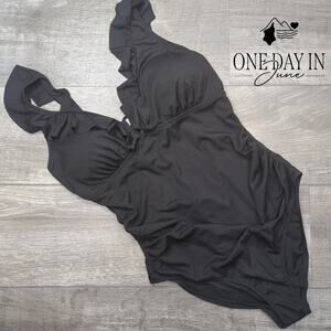 Summermae Maternity Ruffle Shoulder Ribbed One Piece Swimsuit Size L