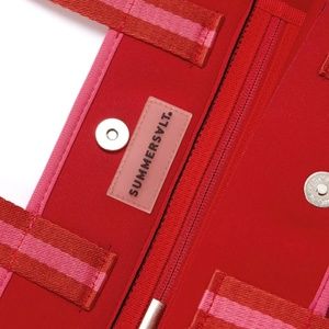 - Summersalt Perfect Beach - soft and water-resistant neoprene with the durable webbing handles (9.5" handle drop); roomy interior space measuring 15”x13”x5” with 9”x5” interior mesh valuables pocket.