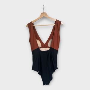 Summersalt Black and Brown One Piece Swimsuit V-Neck Color Block