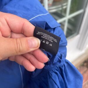 Gorgeous summersalt coastal poplin ruffle neck midi dress. In excellent used condition. The sundress your summer has been waiting for. Crafted from breezy & eco-friendly poplin fabric, this midi dress flaunts a face-framing ruffle, flattering cinched waist, and flouncy hem. And bonus: it has pockets.