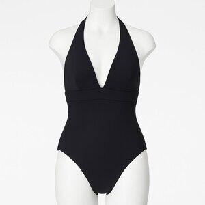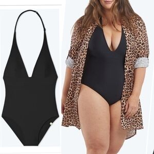 Summersalt Halter Plunge V-Neck Beach Vacation One-Piece Swimsuit Black 14