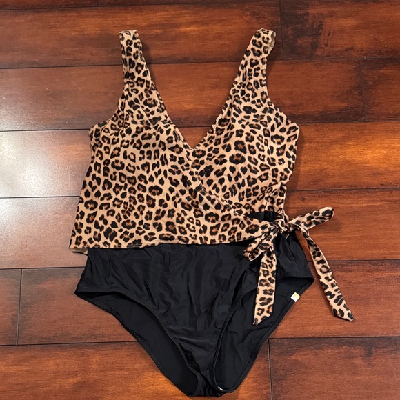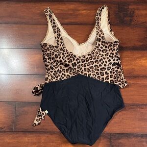 Chic leopard print swimsuit. Features a stylish animal pattern.