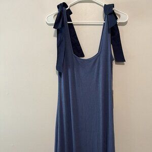 Summersalt NWT Poplin Ribbed Tie Shoulder Blue Maxi Dress Size Large