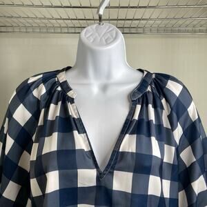 Summersalt Navy Gingham Blouse Size XS Coastal Boho Peasant Flowy Nautical