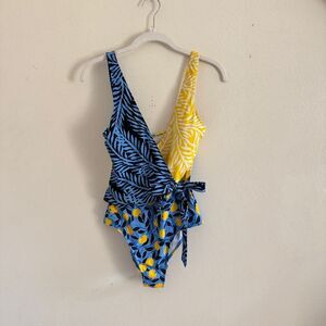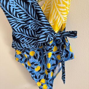 Tags: summer fun pool beach water sport beachy vacation resort holiday summer fun lemons fruit printed coverage v neck open back bright fun