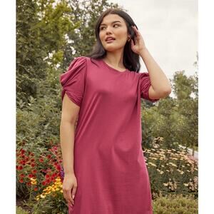 Summersalt The Luxe Pima Cotton Twist-Sleeve T-Shirt Dress Currant Women's M