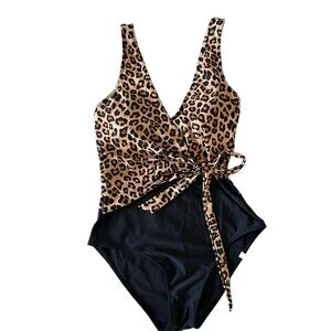 Summersalt The Perfect Wrap One-Piece Swimsuit Leopard Print Size 8