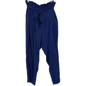 Slip into luxury with these Summersalt silky satin paperbag pants in rich navy blue. Designed for elevated comfort, these lightweight trousers feature a soft sheen, a cinched high-rise waist with a tie belt, and a relaxed wide-leg silhouette that drapes beautifully. Whether you’re dressing up for dinner or lounging in style, these pants effortlessly blend quiet luxury with modern minimalist vibes.