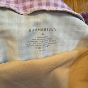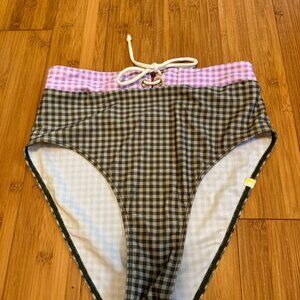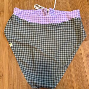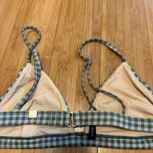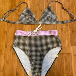 Summersalt classic triangle bikini top (Size 4) in cute gingham print with option for cups for customizable support and adjustable straps for that perfect fit. Matched with the Summersalt high leg bikini bottom (Size 6) in a matching print.The vintage-style high waist and leg openings give you legs for days.