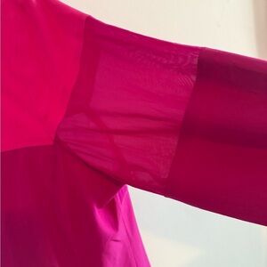 Bright and bold lightweight jacket by Summersalt. Features a two-tone pink design. The hood can be zipped inside or worn out. Never worn, in perfect condition.