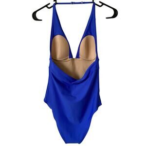 Elegant one-piece swimsuit. Deep V-neck design. Royal blue. NWOT