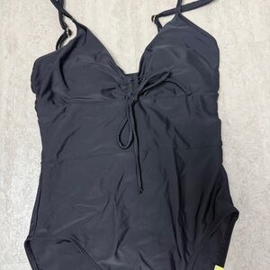 cinched fabric and tiny tie at the neckline accentuates the bust, creating a super flattering shape for all sizes