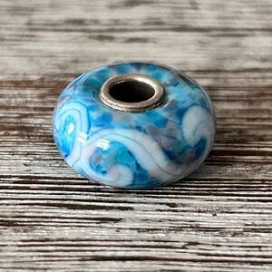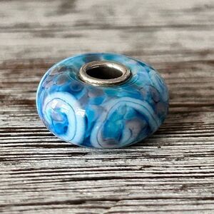 Summersday Artisan Trollbeads Style Trollstone Blue Pink White Mosaic Swirl NEW