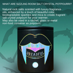 Sizzling Room Salt Crystal Potpourri are natural rock salts scented with fragrance oils, enhanced by a touch of beautiful color, biodegradable sparkles and mica to create fragrant salt crystal potpourri for your warmer. May also be used in a sachet, glass or metal non-food container as potpourri.