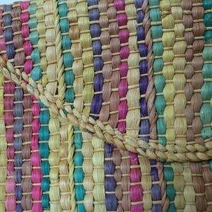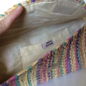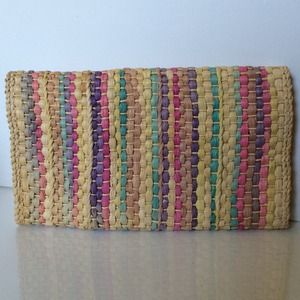 Beachy perfection is found in this casual cool stripe pattern straw clutch. Perfect condition Velcro closure. Pencil is for scale.
