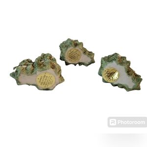 Green white tip snow tips figurines. set of 3. no chips or cracks. measures approx 3.75" x 2" x 3"