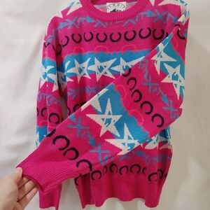 crew neck, long sleeve, pullover style, horse equestrian cowboy cowgirl Western theme - horseshoe, western stars, ski sweater
