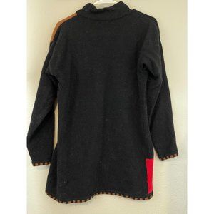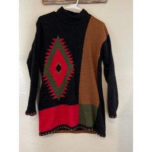 Summit Hill Lamswool VTG Medium Angora Dress Southwestern VTG Mock Neck Knit L/S Warm BLack Tan Thigh Length CL