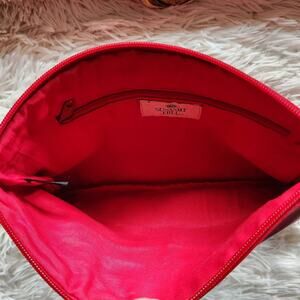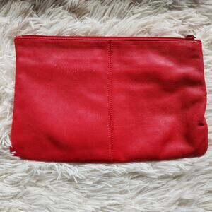 Summit Hill Leather Clutch Purse Solid Red Zip Top Holiday Handbag Vintage