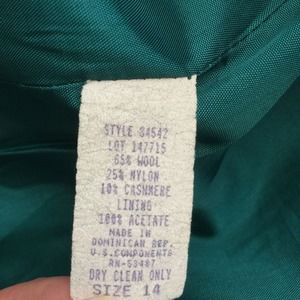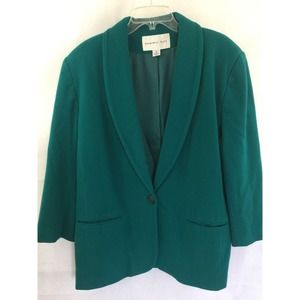 Summit Hill Sz 14 Blazer Jacket Career Green Wool Cashmere Blend 1 Button Lined