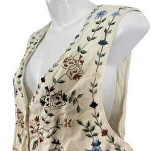 Summit Hill Womens Embroidered Vintage Floral Vest Ivory Womens 90ss sz M