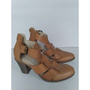 Summit Leather Heels Gladiator Strappy Block Heel Tan Ankle Strap Size 7