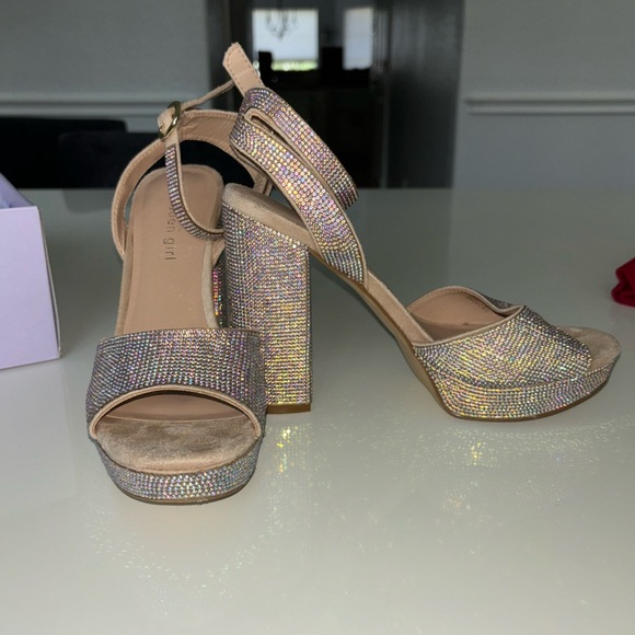 The Macy’s Description of these shoes: “Add a touch of retro flair to your nighttime look with the rhinestone shine of Madden Girl's born-to-be-bold platform sandals.