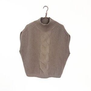 Summum Woman Italy Wool Taupe Brown Cableknit Sleeveless Sweater Womens Small