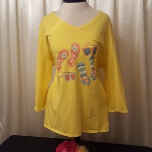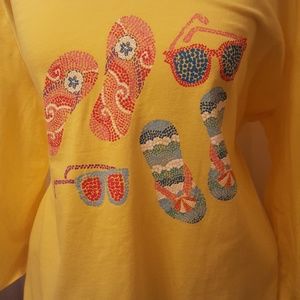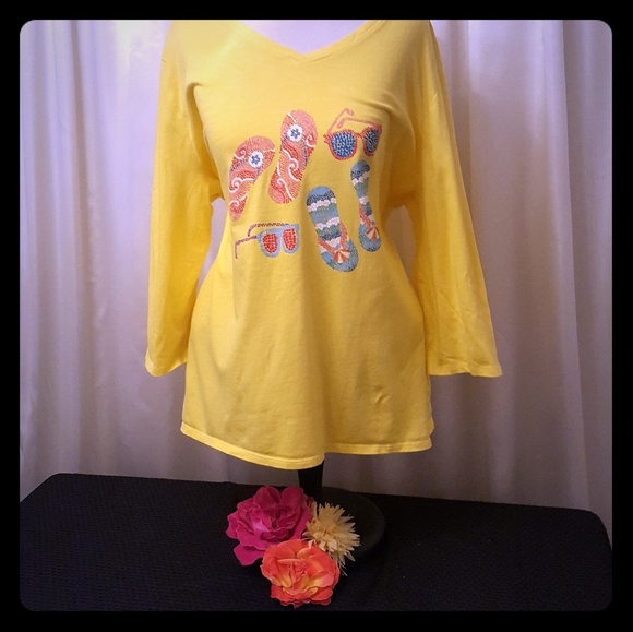 Three-quarter length sleeve, yellow T-shirt with Summer details little bit of Sparkle, in mint condition like brand new