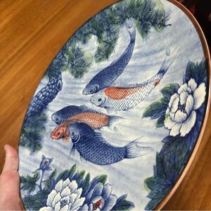 Sun Ceramics 12.5” Koi Fish Porcelain Charger Plate