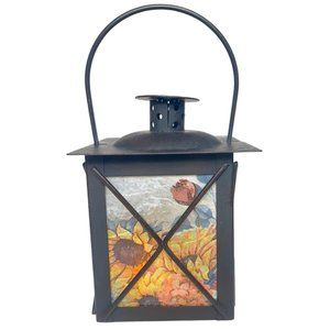 Artisan Crafted Metal Lantern Decoupaged with Sunflowers Set of 2