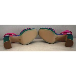 Sun Gurg Women's Sz 8 Hot Pink Open Toe Ankle Strap Platform Chunky Heel Sandals