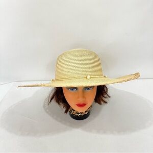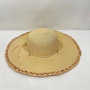 Sun Hat Faux Pearls Details Around Packable Tan Light Brown