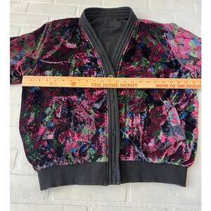 Sun Hung Velvet Floral Black Purple Reversible Bomber Style Button Jacket-sz XL