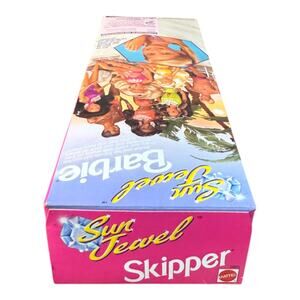 This 1993 Sun Jewel Skipper doll by Mattel is a true gem! With her beautiful blonde hair, striking blue eyes, and dazzling jewel accents, she's sure to bring a sparkle to any collection.