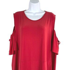 Sun Kim Dress Cold Shoulder Red Solid Polyester Spandex NWT Women's 1X