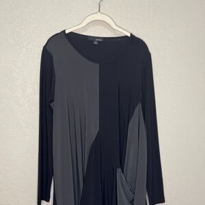 Sun Kim Dress M Black Gray Colorblock Asymmetric Pocket Travel Knit Lagenlook