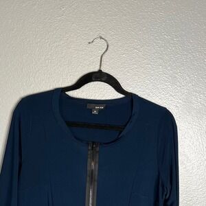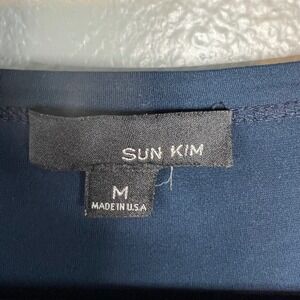 Sun Kim Tunic Top Size M Blue Long Sleeve Pockets Zip Front Lagenlook Artsy USA