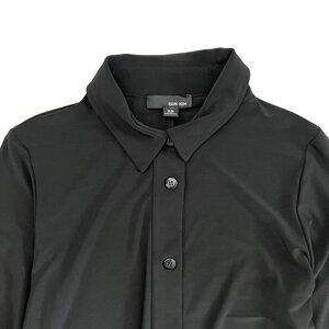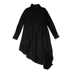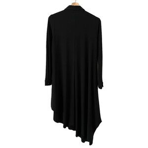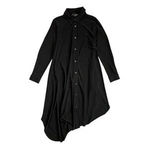 Sun Kim Womens Lagenlook Asymmetric Hem Midi Shirt Dress Black XS Collared
