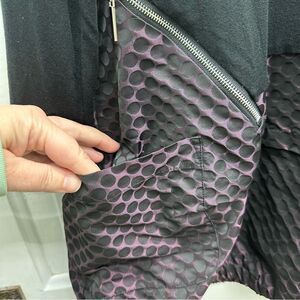 Sun Kim black purple iridescent long sleeve dress women's medium. shoulder to hem 33