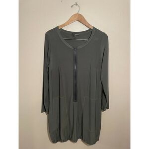 Sun Kim Jersey Zip Front Bubble Hem Tunic Top Medium Stretch Pockets Lagenlook