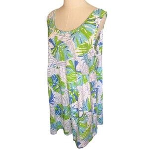 Sun Moda California Green Size Small Dress Summer White Leaf Pattern Knee Length