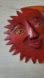 Beautiful wooden wall art featuring a sun and moon design. Rich red and brown tones. Handmade.