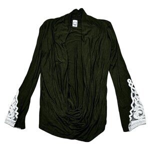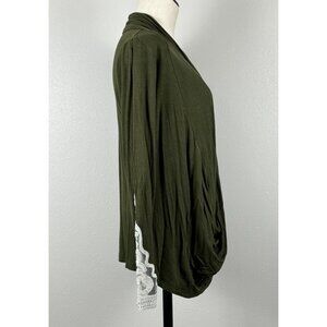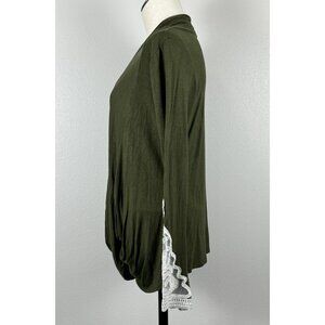 Sun Moon Womens Green Draped Cowl Neck Shirt Partial Lace Cuff Stretch Large?