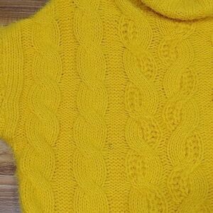 Sun + Moon Yellow Turtleneck Cable Knit Sweater Size XS. Yellow. Long sleeve. Turtleneck. Cable knit. Nylon and acrylic. Spot with discolored yarn (please see pics) Measurements are approximate.