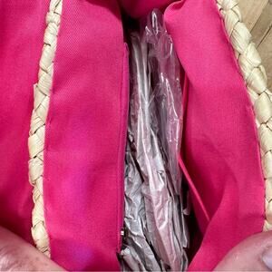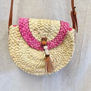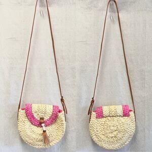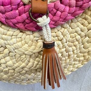 Sun N Sand Round Paper Straw Shoulder Crossbody Bag Natural/Pink with tassel