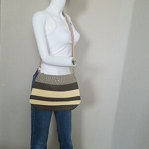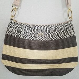 Sun 'N' Sand Striped Straw Crochet Shoulder Bag. EUC.