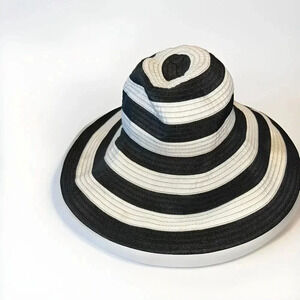 Sun N Sand Women's Black White Striped Beach Sun Hat UPF 50+ Sun Protection