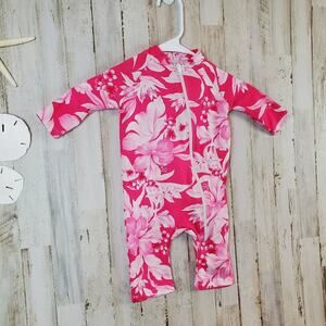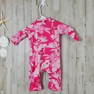 Sun Protection Zone Hawaiian Floral Girls Swimsuit Size 6/12 Months Pink White