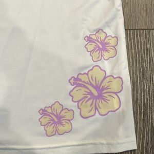 Worn once, like new. Hibiscus Flowers change colors when exposed to UV light. UPF 50+